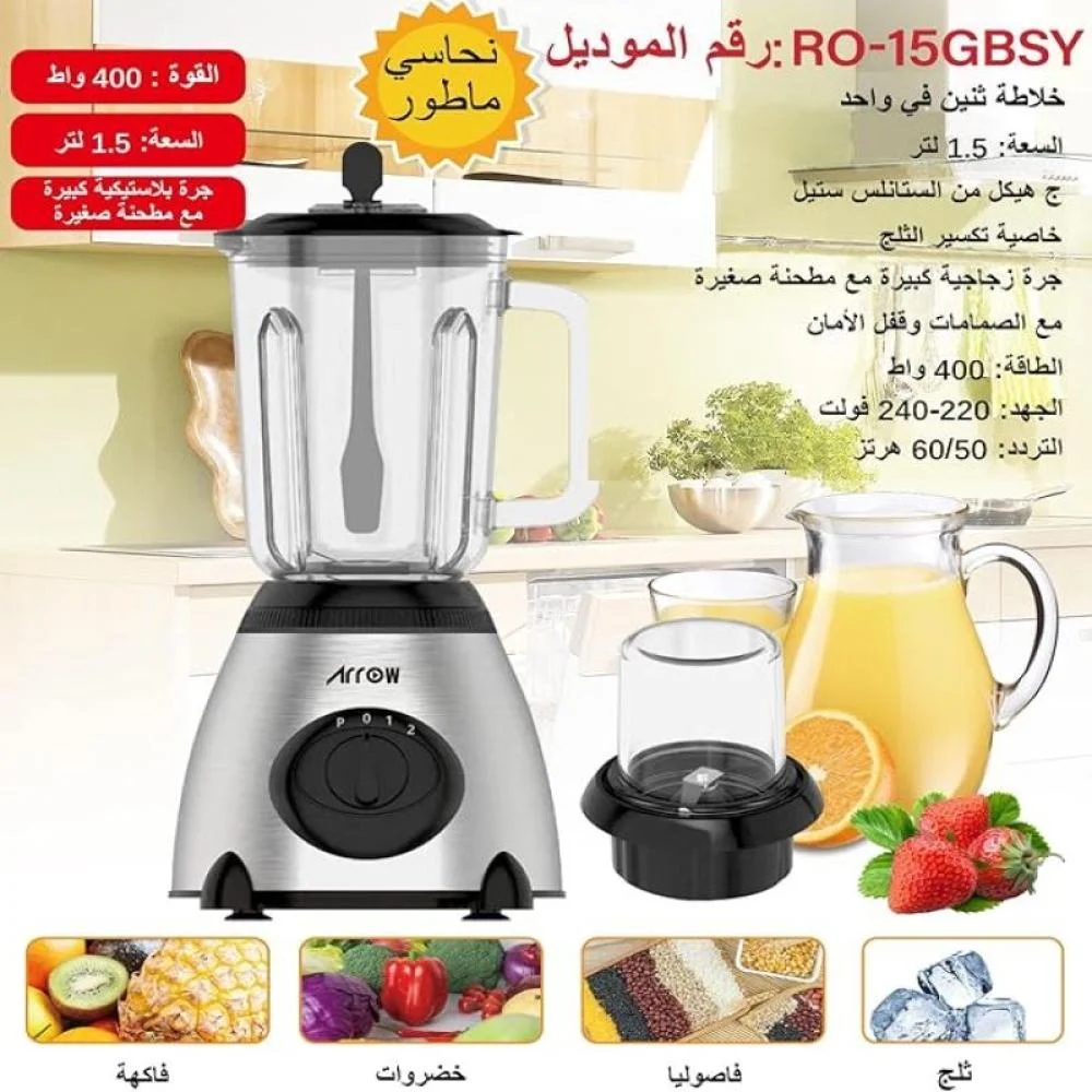 مواصفات الخلاط الزجاجي 1.5 لتر بقوة 400 واط من آرو: