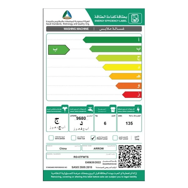 مواصفات أفضل غسالة اتوماتيك 6 كيلو تحميل امامي من ارو: