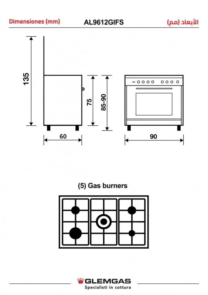 مواصفات فرن جليم غاز 60×90 سم 5 عيون في السعودية