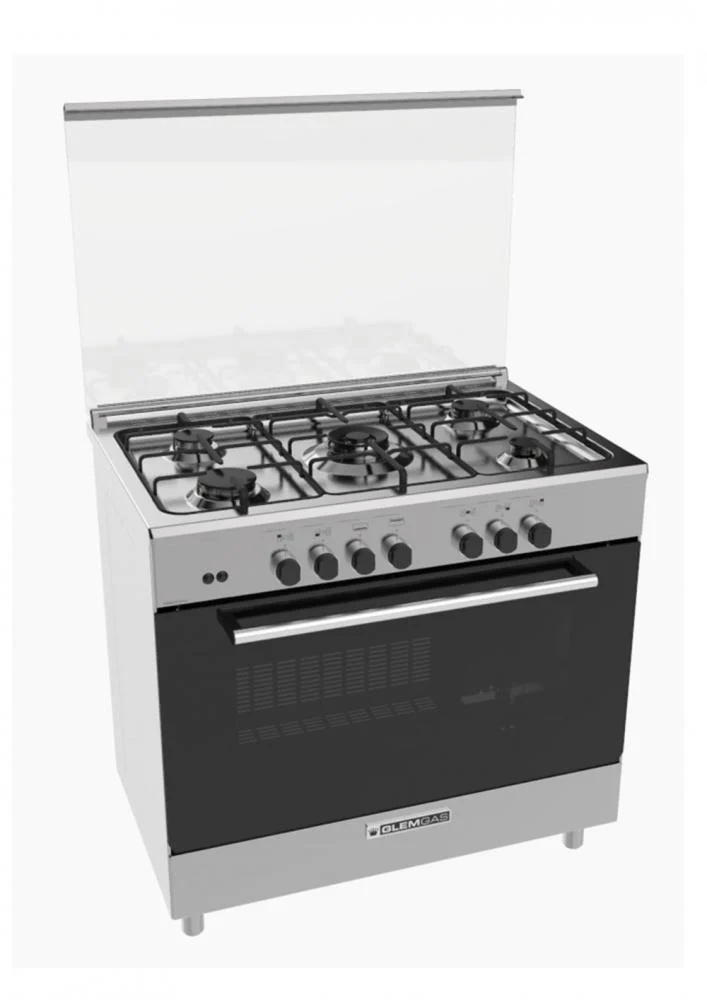 الأمان الكامل: فرن غاز 5 عيون مع إشعال ذاتي وزجاج مزدوج للباب، ستحصلين على تجربة آمنة ومريحة في المطبخ.