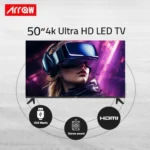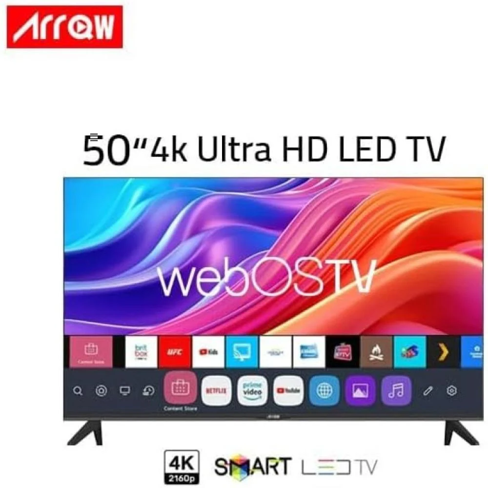 استمتع بتجربة مشاهدة مذهلة مع شاشة تلفزيون ARRQW مقاس 50 بوصة بدقة 4K UHD، المصمم ليمنحك صورًا واقعية نابضة بالحياة وصوتًا غامرًا بجودة استثنائية، مع تصميم عصري بدون إطار يضفي لمسة فاخرة على منزلك.