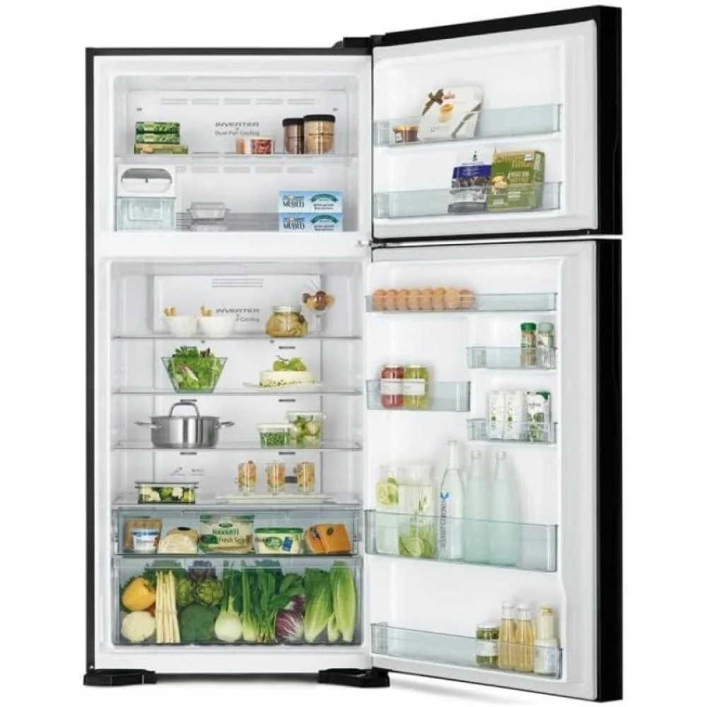 سعة تخزين ضخمة: هيتاشي ثلاجة بابين مع حجم 550 لتر، توفر مساحة واسعة لتخزين جميع احتياجات العائلة، من الأطعمة الطازجة إلى المجمدات، بدون فوضى.